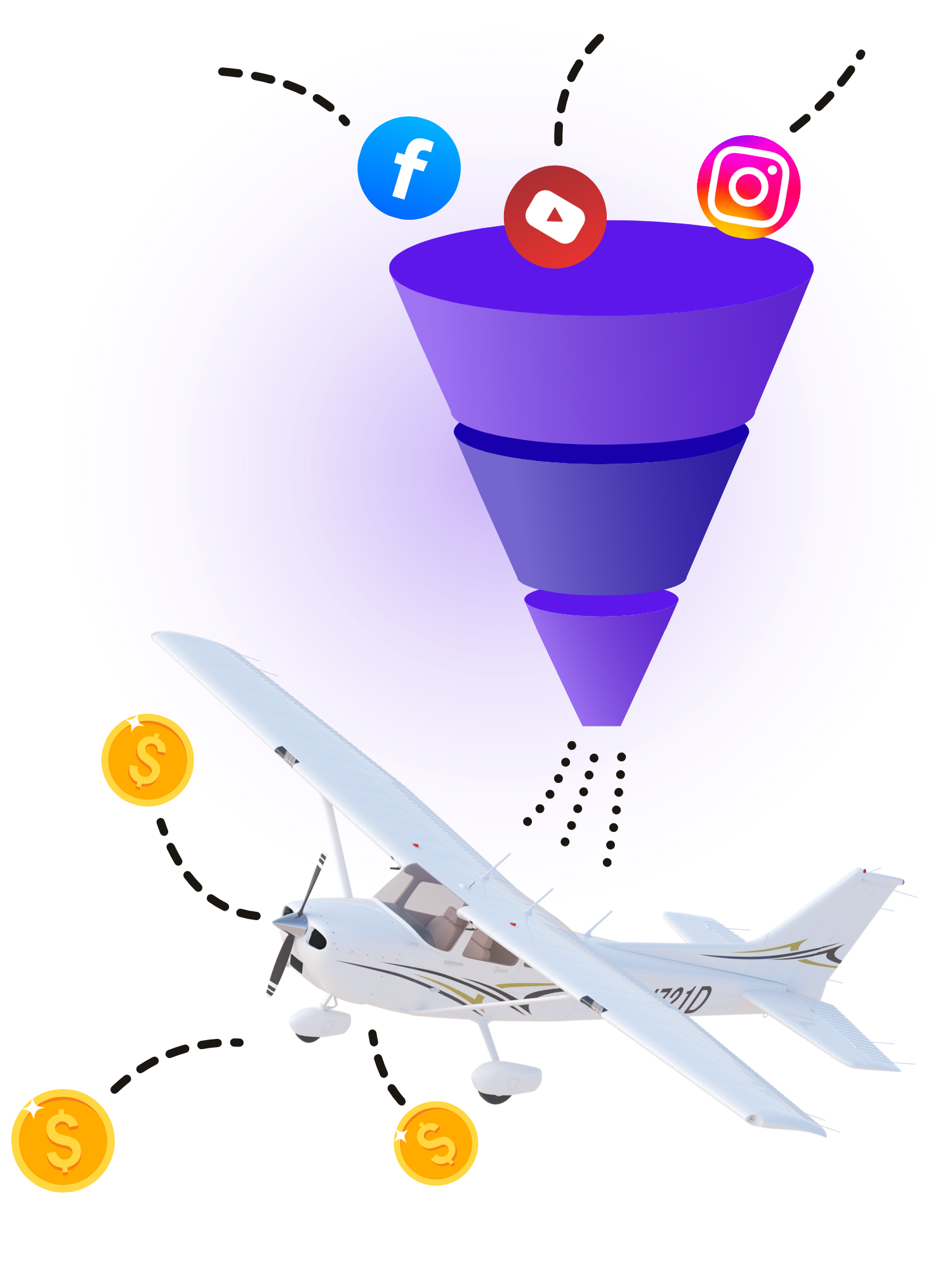 We build funnels that convert clicks into scheduled flights, not just leads.